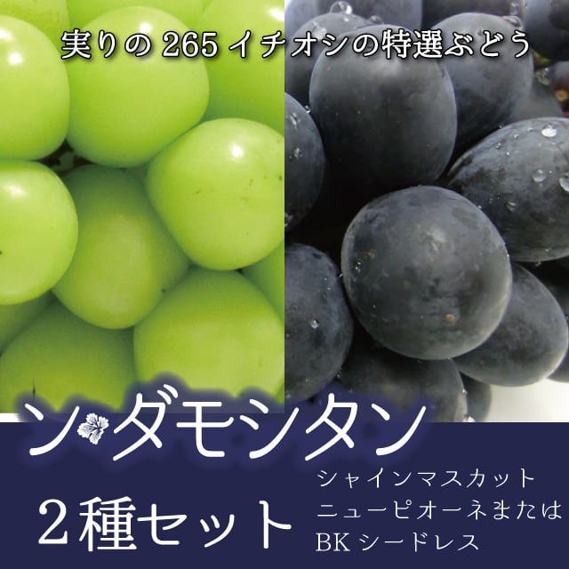 「ン・ダモシタン」シリーズのシャインマスカットとニューピオーネまたはBKシードレスの2種の味が楽しめるお得な商品です。化粧箱に詰めてお届けします! ※8月下旬からのお届けになります。 お盆までにお届けできない場合がございます。 ※表示される送料はクール代込となっております。